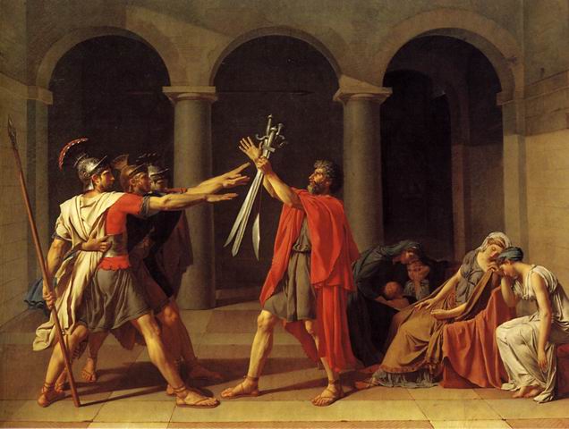 端。 大卫是古典主义的第一个代表。《荷加斯兄弟宣誓》表现的是希腊故事。 |