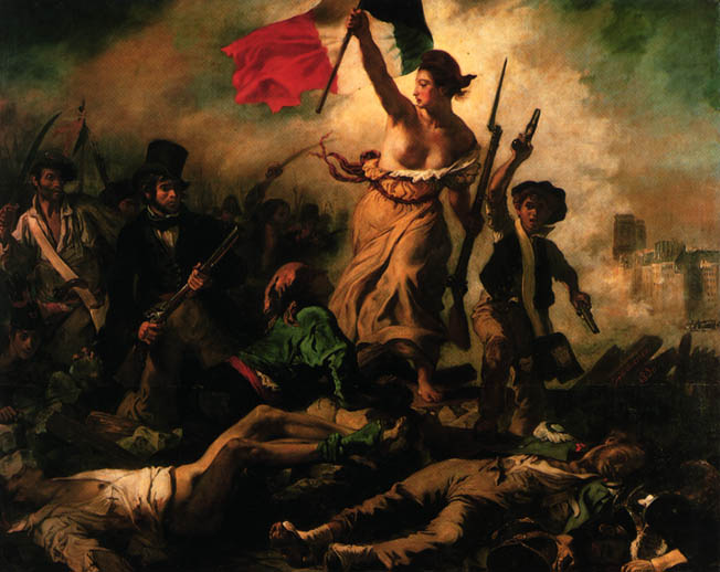 德拉克罗瓦,是浪漫主义最杰出的代表。 《自由引导人民》反映法国大革命,主要人物显然处理为女神的形象,表达了澎湃的浪漫主义情怀。注意有个小孩,很多表现这一历史事件的作