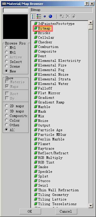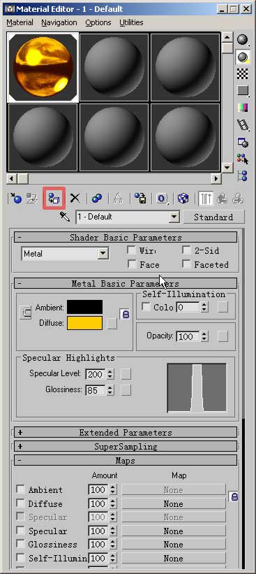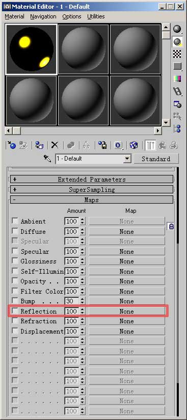 点开maps卷展栏,按下反射贴图通道的none按钮,赋予贴图。
