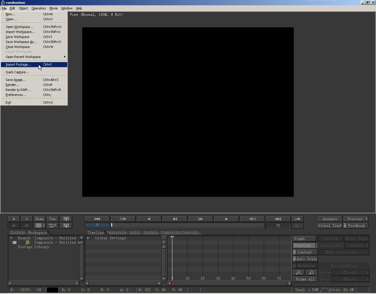 启动combustion,建立一个合成,在文件菜单点击new。