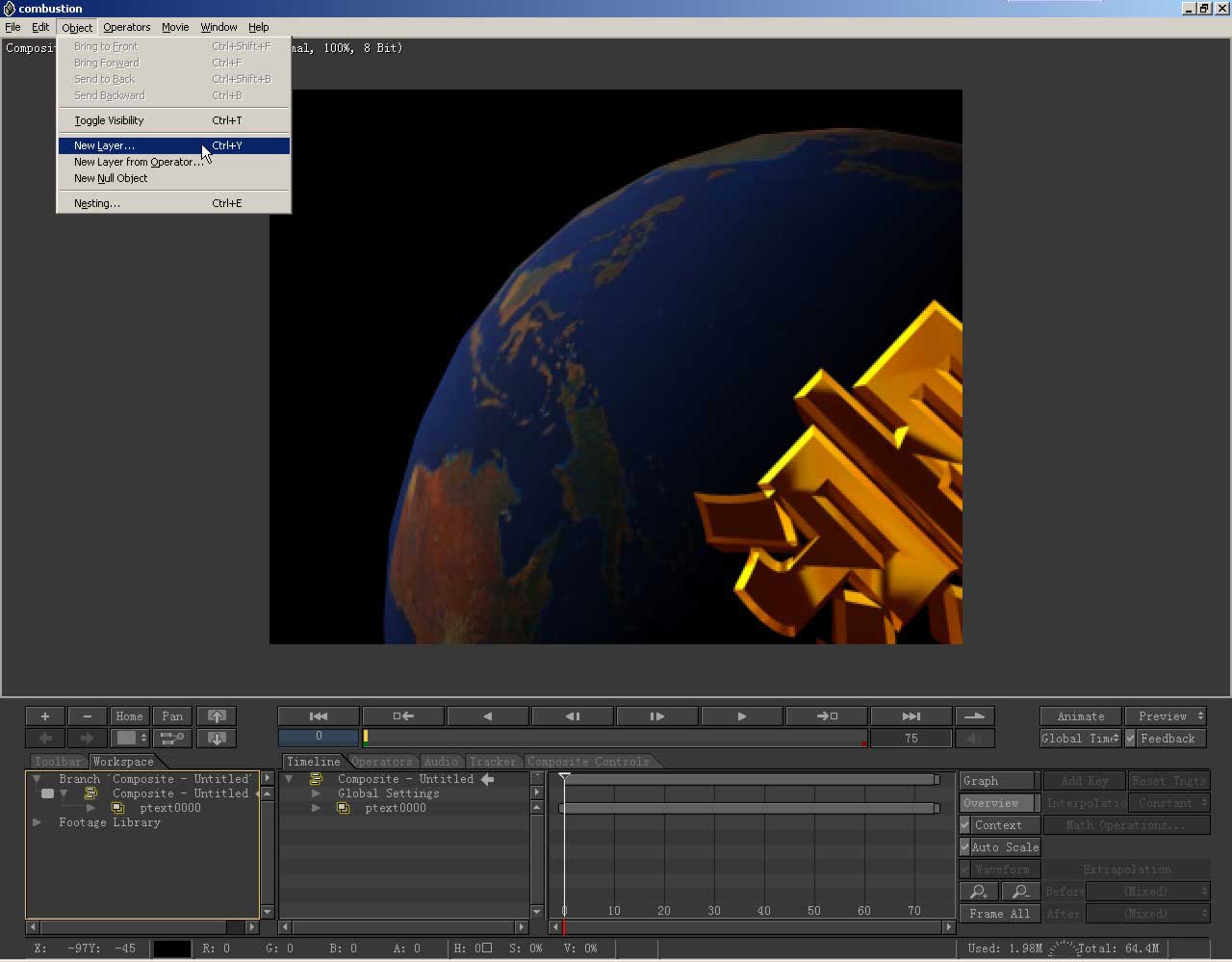 我们先前制作的这段素材是没有背景的,在这里我们要加上一个星空的背景。点击object菜单,选择new layer建立一个新层。