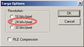 tga图像的选项使用24位就行了,不要透明通道。