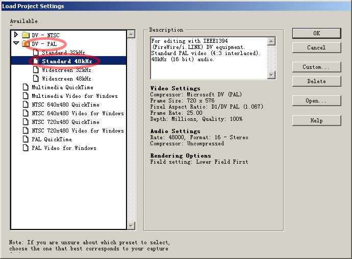 启动premiere,直到弹出项目设置窗口,选择DV-PAL制式。