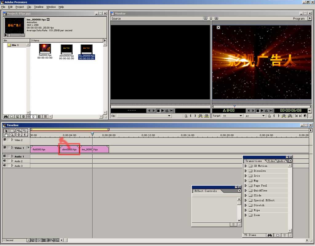 我们将利用premiere把先前制作的素材编辑加工,并串联为一个完整的片头。