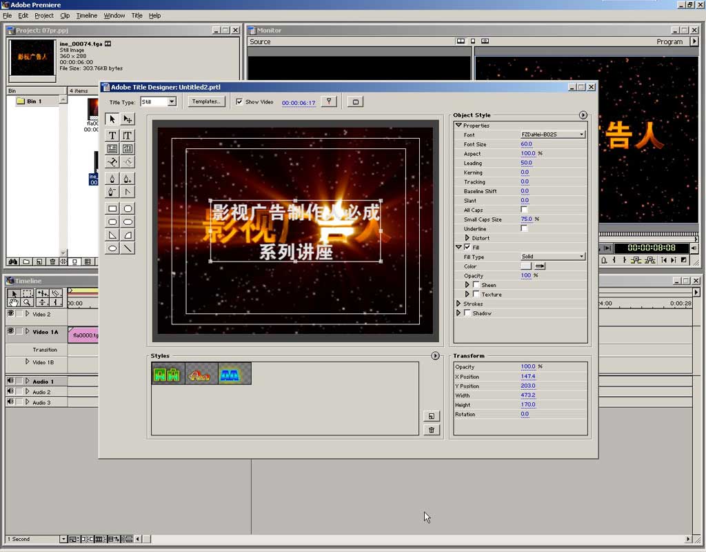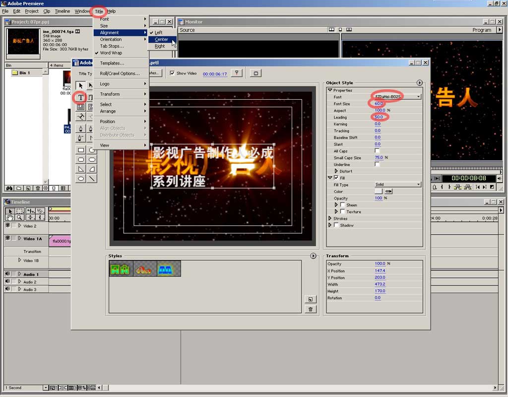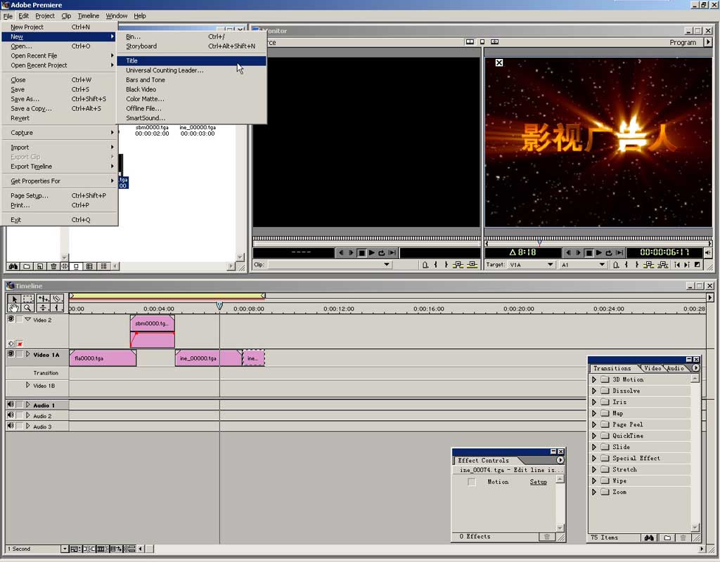 下面我们建立一个字幕。到文件菜单中选择new\title新建一个字幕。