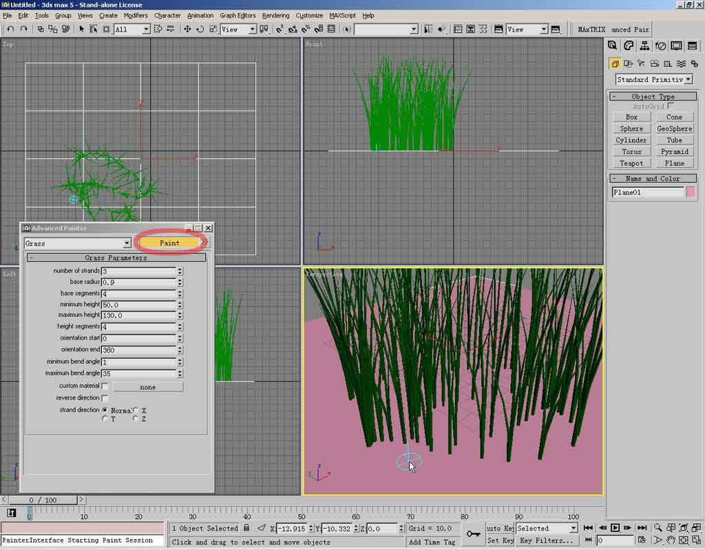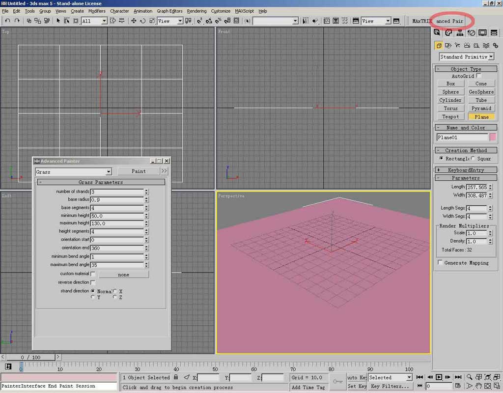 回到advpainter面板,保证平面物体被选中,按下paint按钮,就