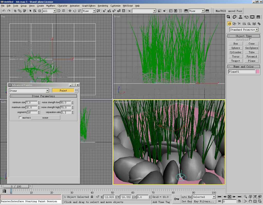 在3dmax中画草地、石头、头发