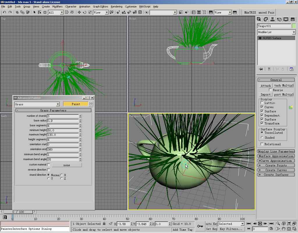 就又可以在上面涂鸦了!瞧,那是一个nurbs茶壶,长了草。