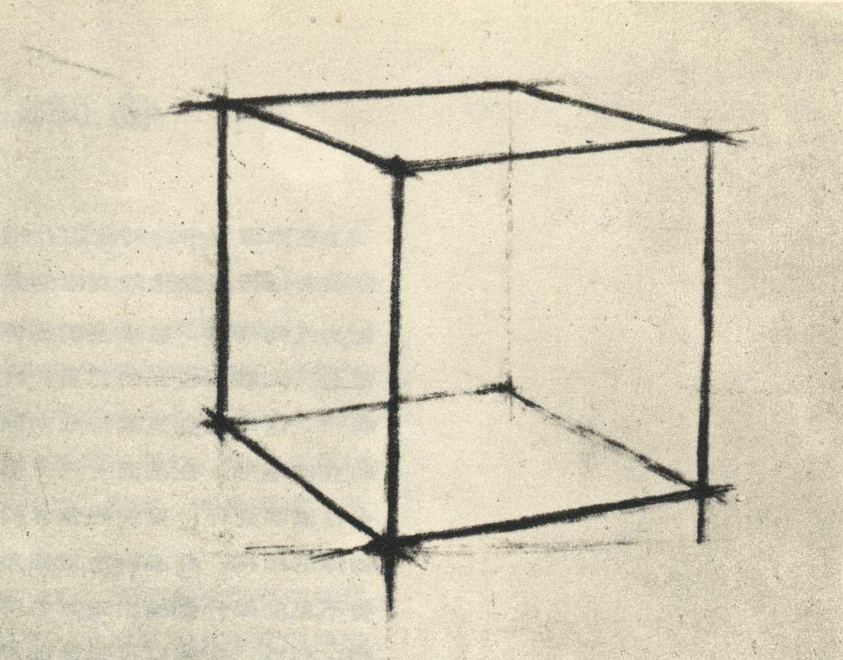 从一个立方体可产生出圆柱体,所有的操作都是通过理性的分析得来,看似是一种笨办法,但却十分有效,因为你必须了解结构的本来面目以及形