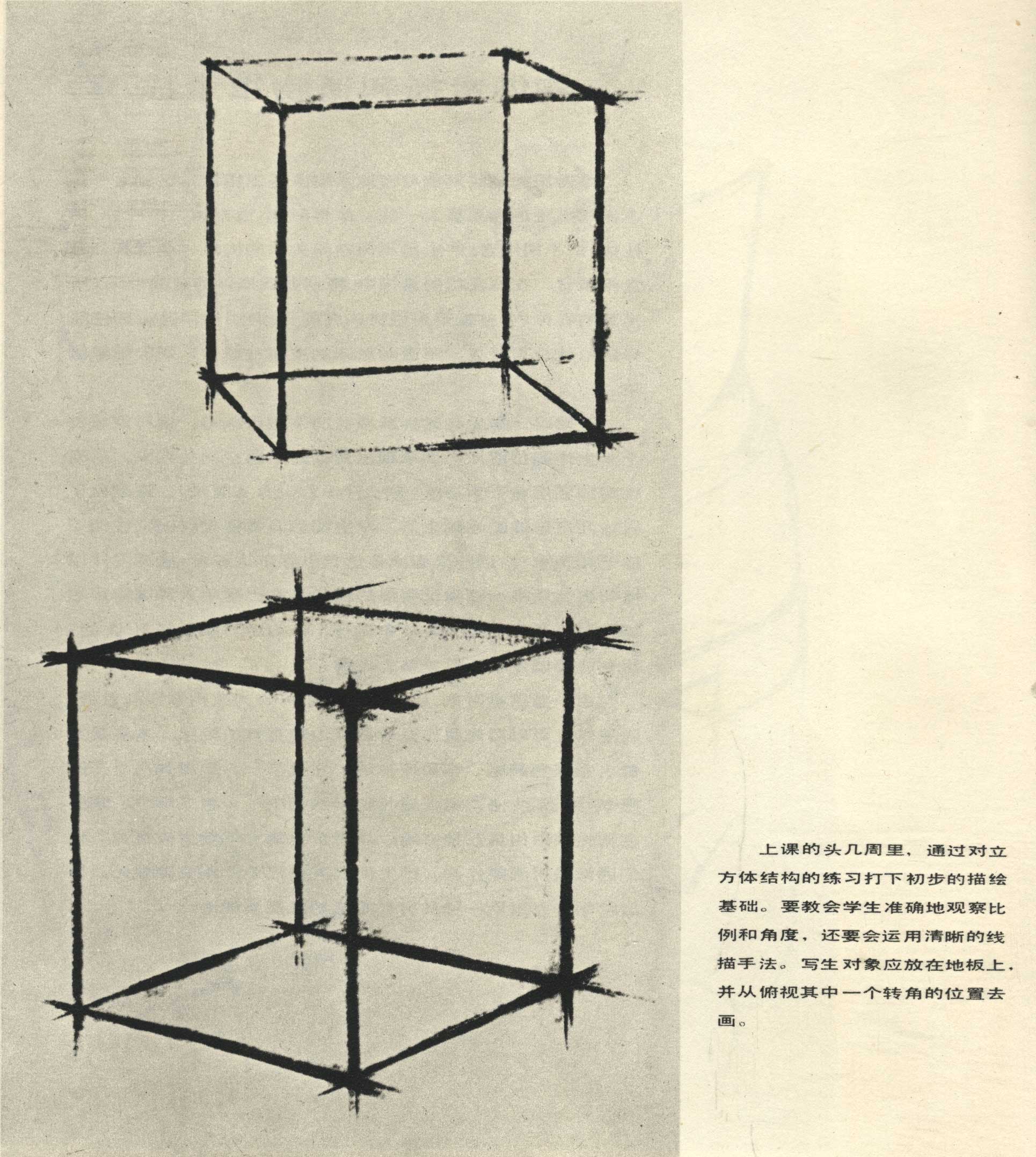 在这样的练习中,要求把看不到的边也表现出来,以此来理解物体在空间中的形态。 |