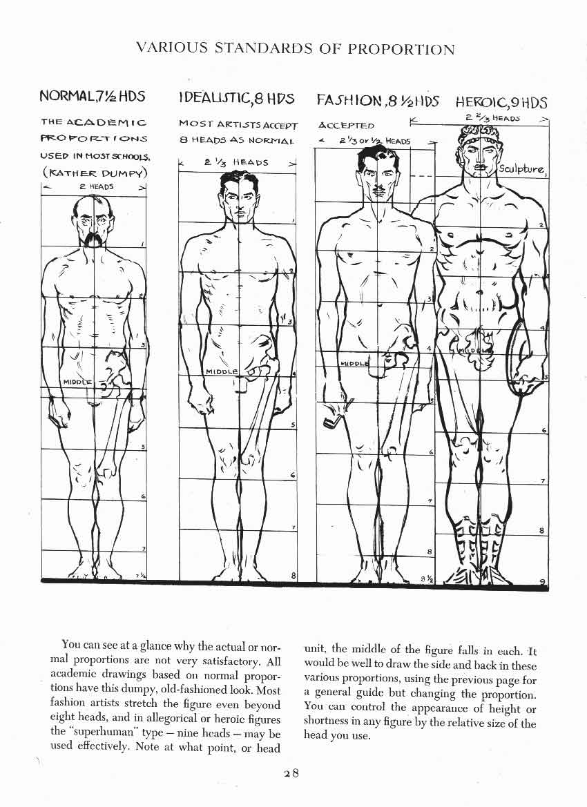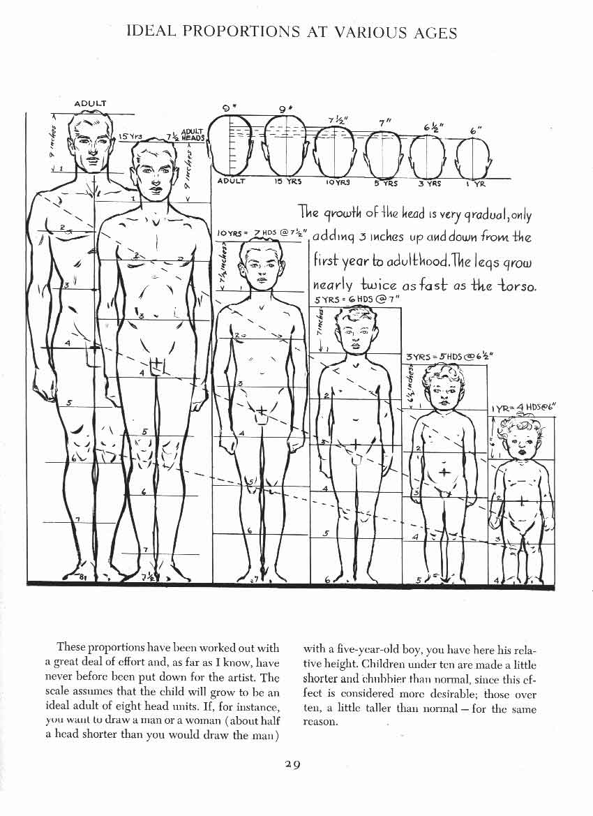 这张图表现了不同身高的比例关系。有朝一日你也可以创造自己的比例,以达到你的设想和题材的需要。 |