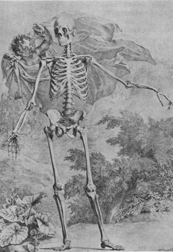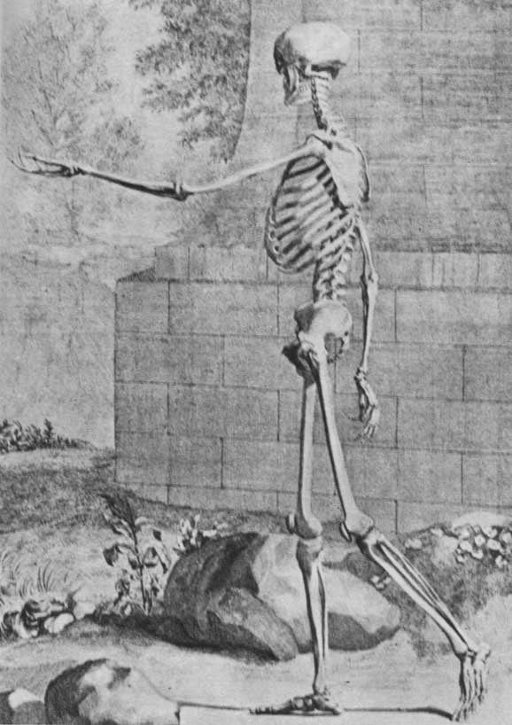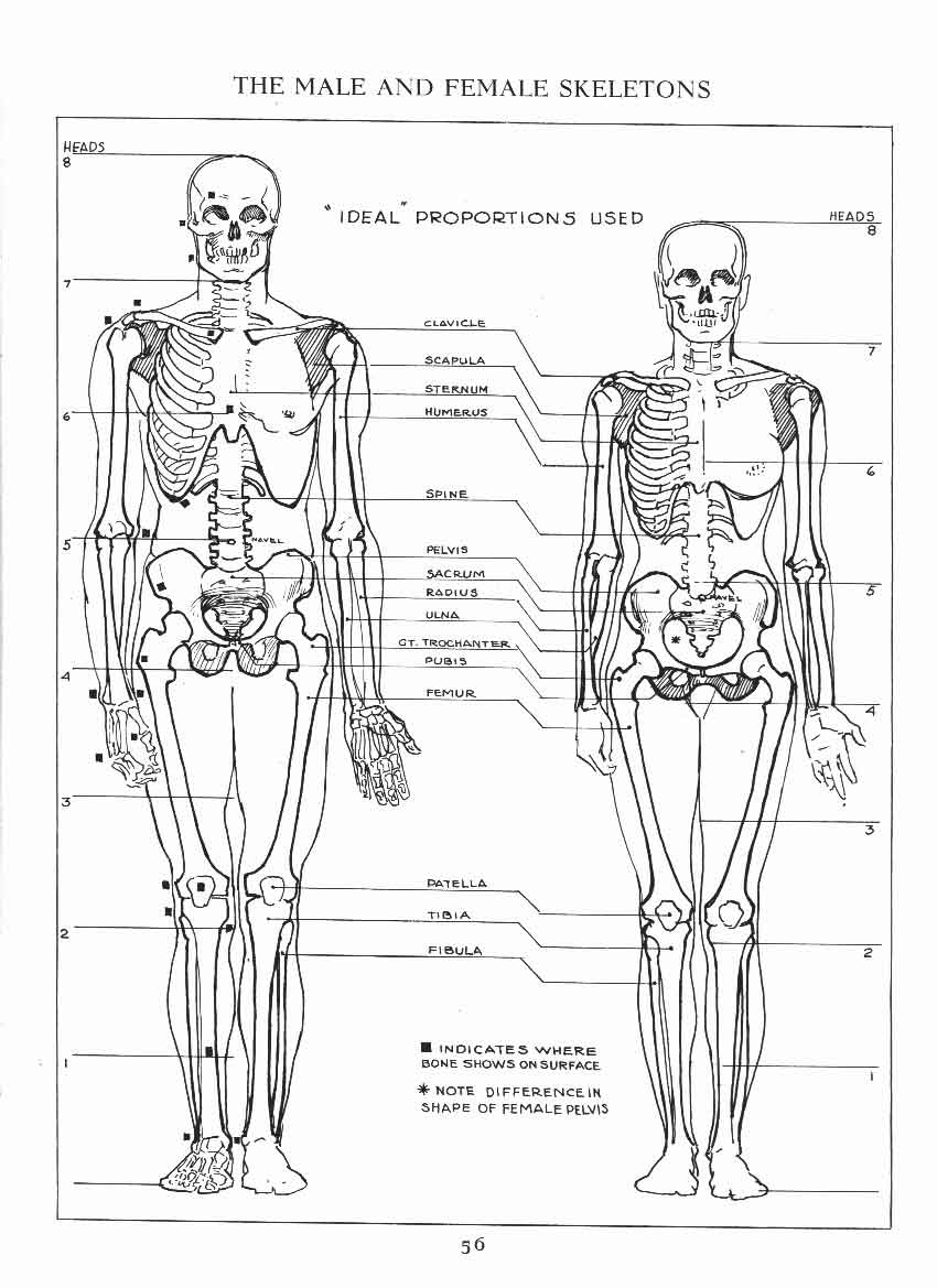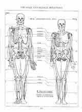 男女骨架。骨骼是支撑人体的内部构造,要把握外形,应当了解结构。 |