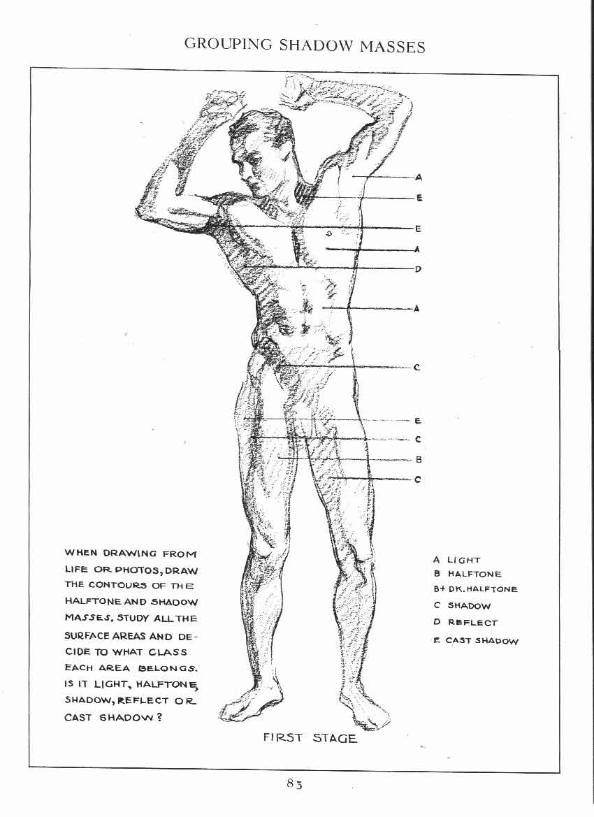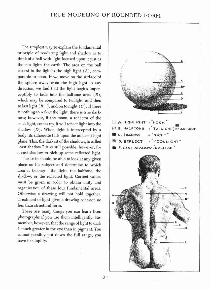 通常说的明暗五调子和阴影在人体上的分布,前提是确定光源的位置。这几种色调分别是,高光、亮部灰调子、明暗交接线、暗部灰调子、反光,