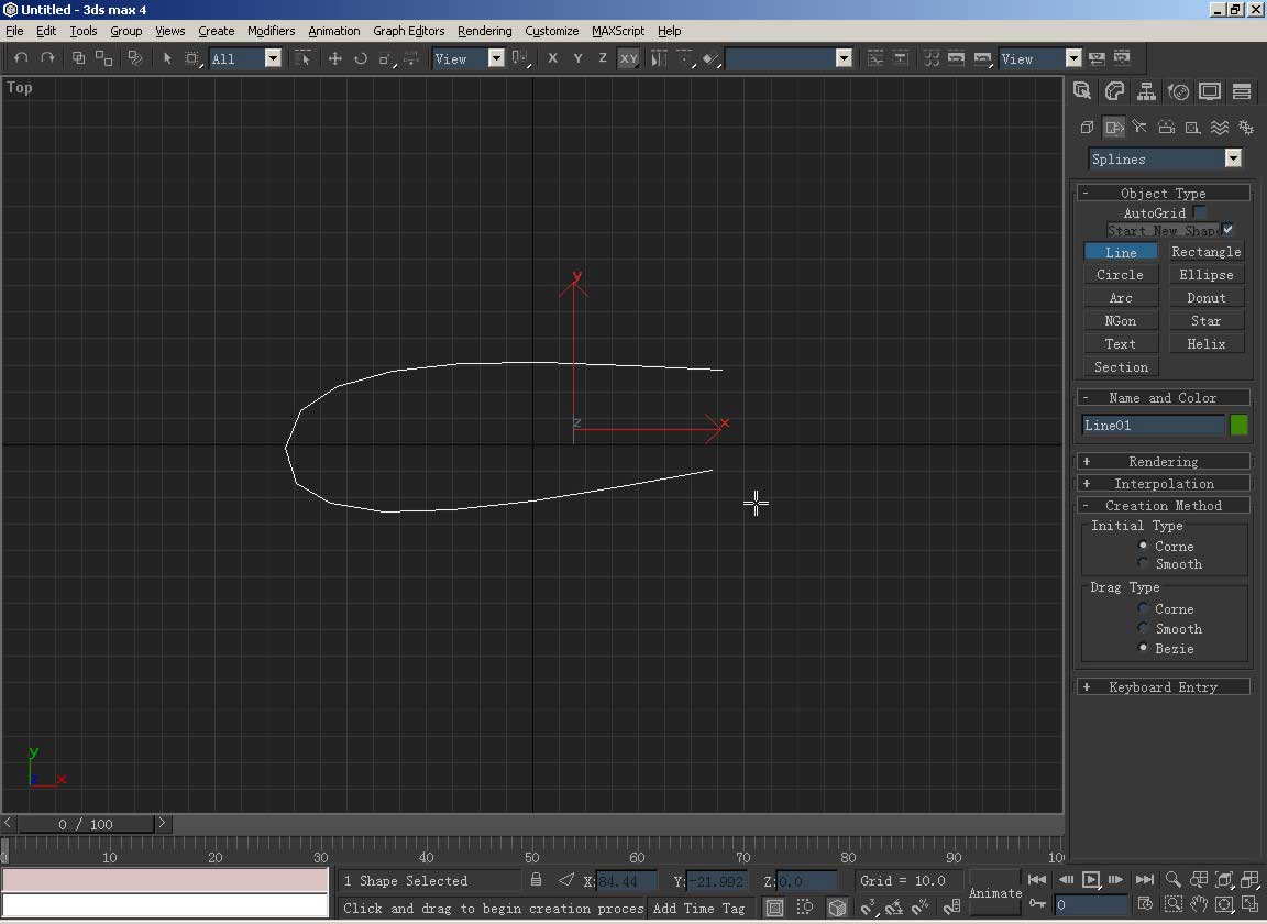 做了这个简单的风车的教程,希望共同切磋! 使用line工具在顶视图中画出一根曲线,只需3个顶 点。